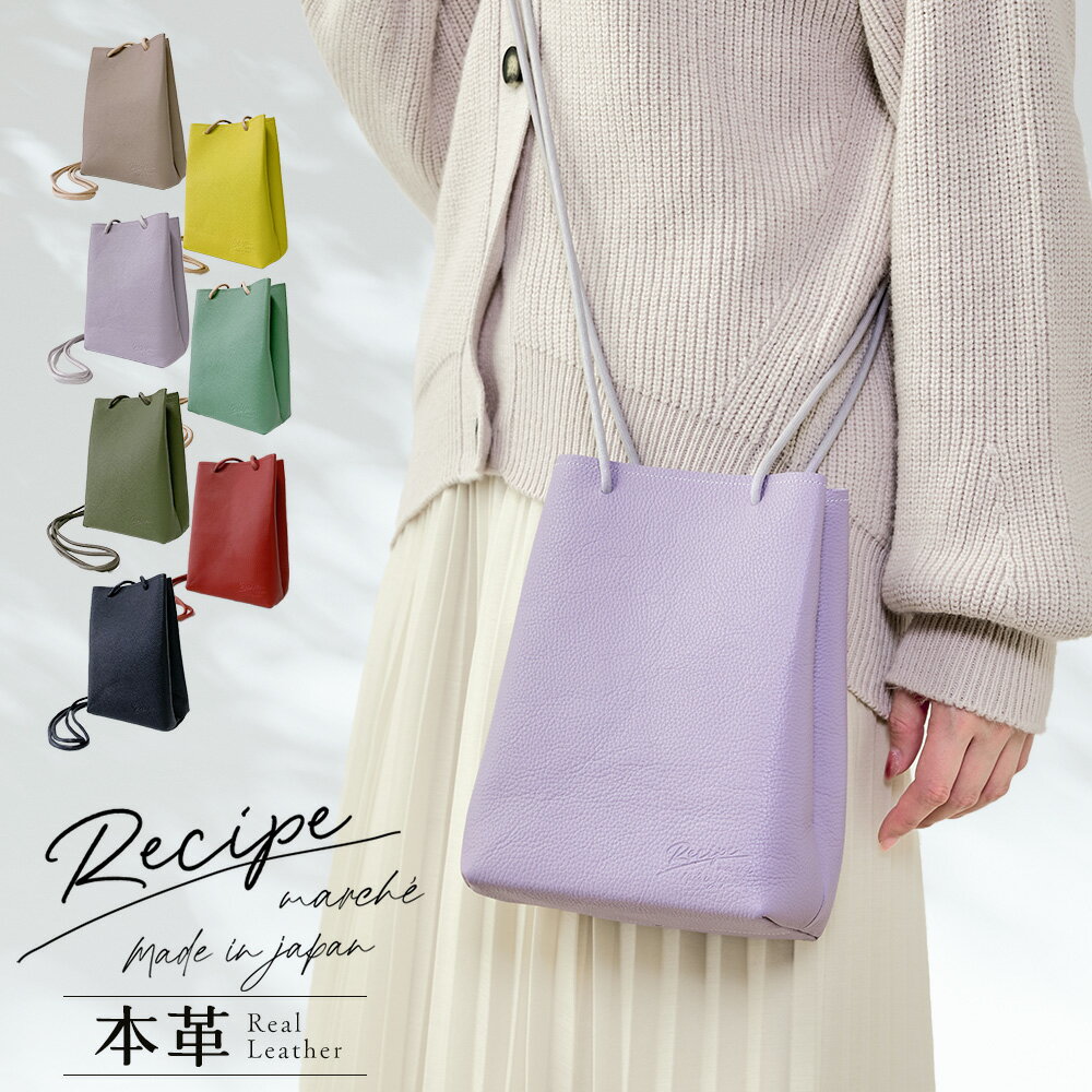 [日本製] レザー 本革 やわらかい ミニショルダーバッグ ショルダーバッグ ミニバッグ ポシェット スマホポーチ レディース 斜め掛け 縦型 スマホポーチ 柔らかい 撥水 軽量 軽い シンプル ファッション recipe レシピ レシピマルシェ ブラック B-15