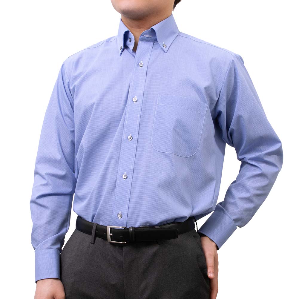 形態安定 メンズ 長袖 シャツ Yシャツ ワイドカラー レギュラーフィット ブルー ドビー