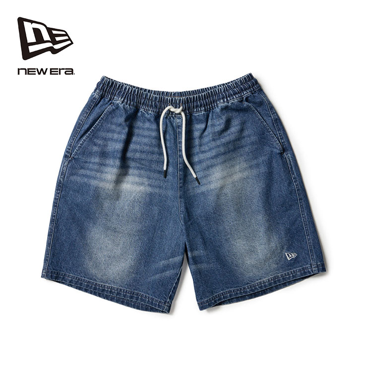 NEW ERA 正規品 ニューエラ ショートパンツ デニム ウオッシュドデニム ウエストゴム ハーフパンツ 綿 ユニセックス エクササイズ フィットネス ジム スポーツ ダンス ヨガ ウェア デニム 14856740