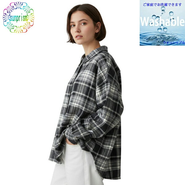 【1000円ポッキリ】フランネル ネルシャツ BOX839 ブラック シャツチュニック チェックシャツ ネルシャツ チェック柄 暖かい ボタンシャツ 厚手 カジュアル ゆったりとしたシルエット 体型カバー 柔らか 長袖シャツ ブラウス 【大きいサイズ】