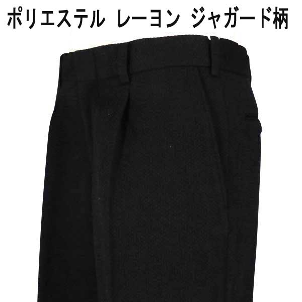 秋冬 M&C(モンテリー&カーメル) スラックス ポリエステル レーヨン素材 1タックパンツ 黒ジャガード柄 【82 85 88 91 97 100cm】