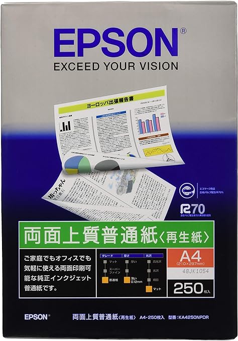EPSON エプソン純正両面上質普通紙[再生紙]A4 250枚 KA4250NPDR