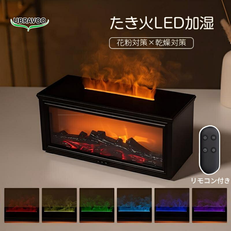 \0の日限定 ポイント5倍/ UBRAVOO 加湿器 アロマ対応 アロマ加湿器 コンパクト リモコン付き たき火LED 小型 大容量 空焚き防止 静音 卓上 小型 おしゃれ 癒しグッズ LEDライト 雰囲気ライト 寝室 乾燥対策 クリスマス 誕生日 プレゼント