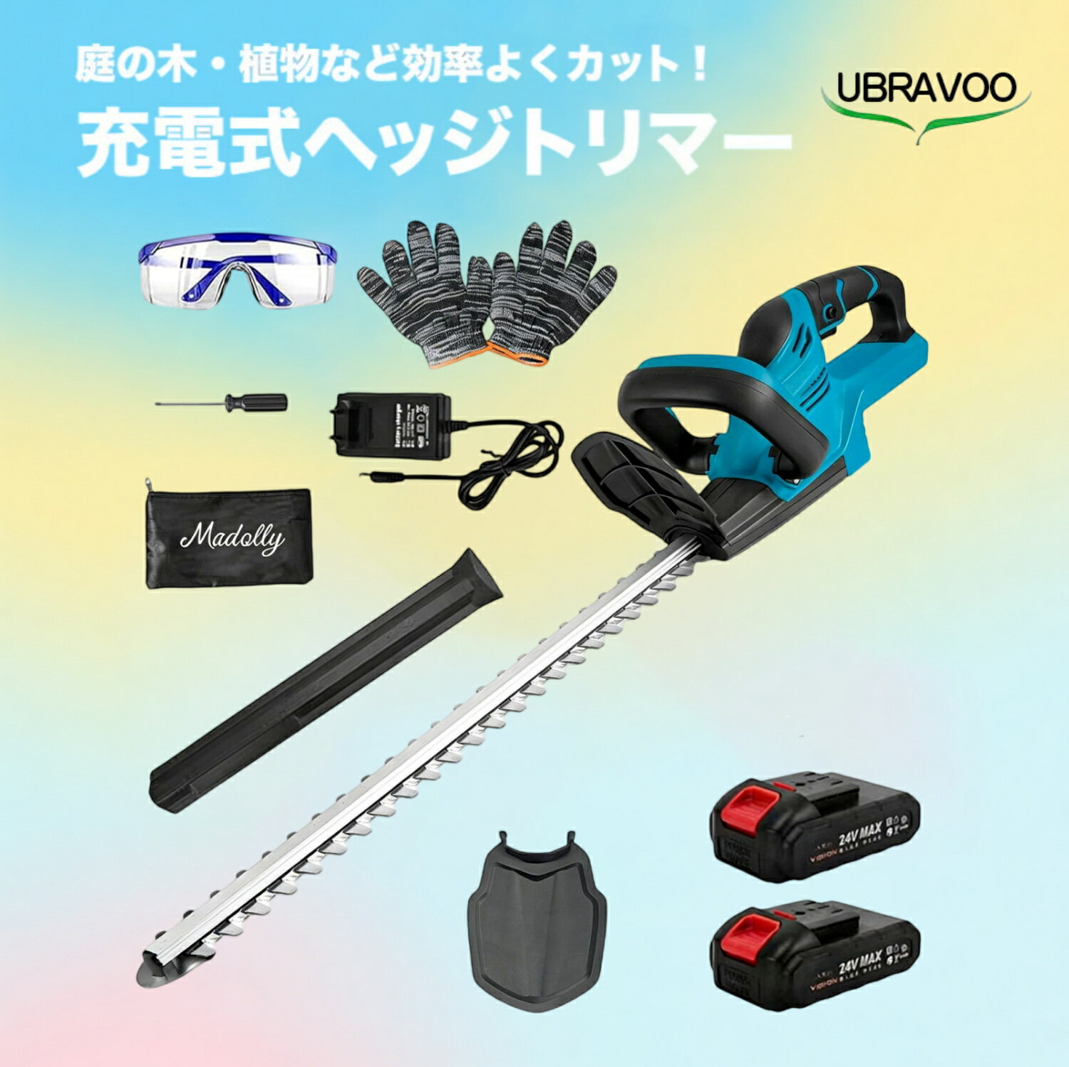\0の日限定 ポイント5倍/ UBRAVOO ヘッジトリマー 充電式 電動ヘッジトリマー 18Vマキタバッテリー対応可能 両刃駆動 高速往復刈り 庭木 剪定 園芸用品 トリマー 電動トリマー ガーデントリマー 生け垣トリマー 剪定バリカン コードレス 軽量 二年保証