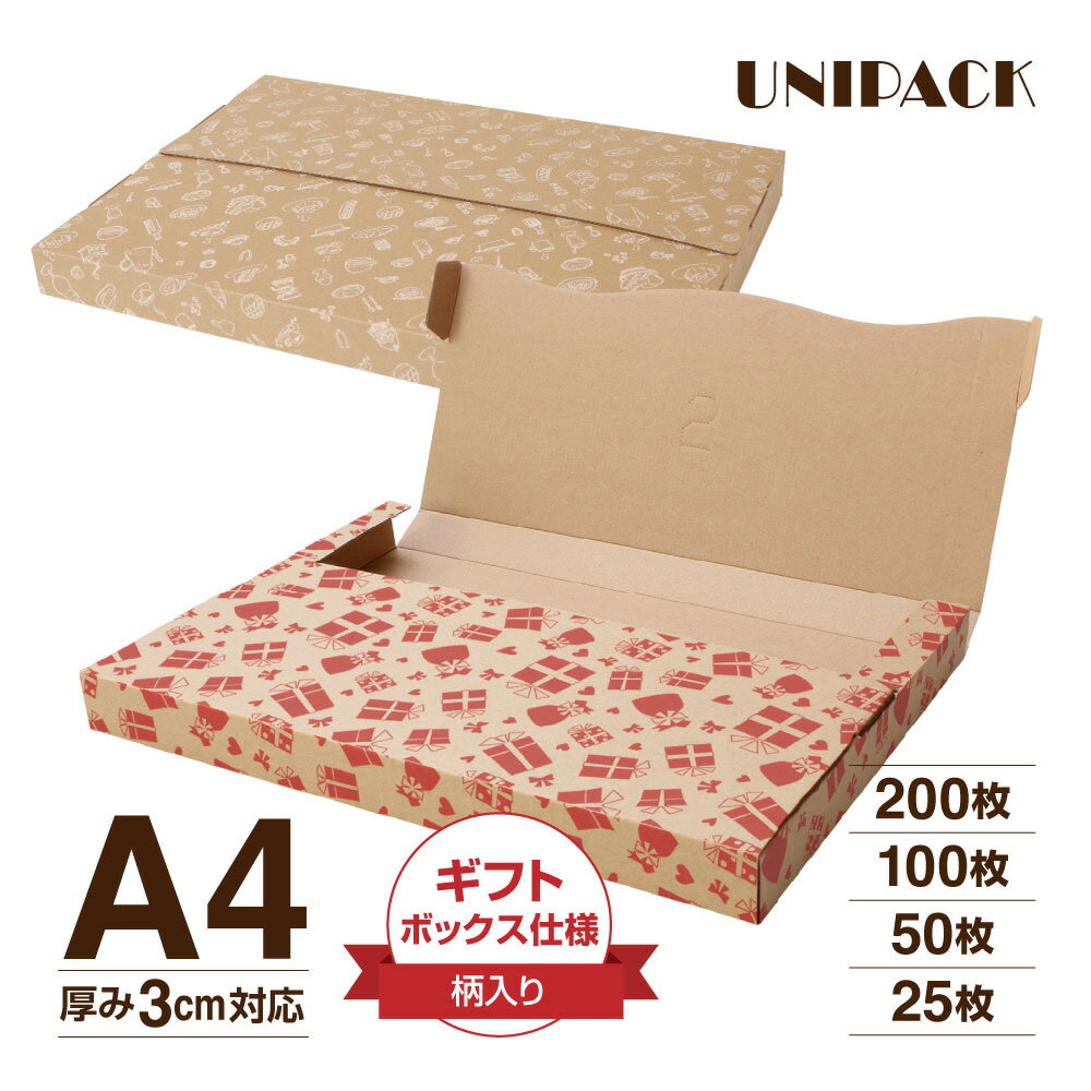 【送料無料】[A4 柄付き]クリックポスト 箱 A4段ボール プレゼント柄 3cm対応 最大 サイズ 通販ボックス コンパクト 箱 ゆうパケット らくらくメルカリ便 宅急便 コンパクト 定形外 規格内 梱包箱 日本郵便 ゆうメール マルチケース ネコポス[UNIPACK 377]