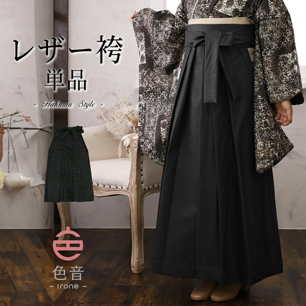 色音 レザー袴 ブラック 卒業式 袴 単品 M L 【 卒業式袴 大学生 教員 レディース 合皮 おしゃれ かわいい はかま 女性 】