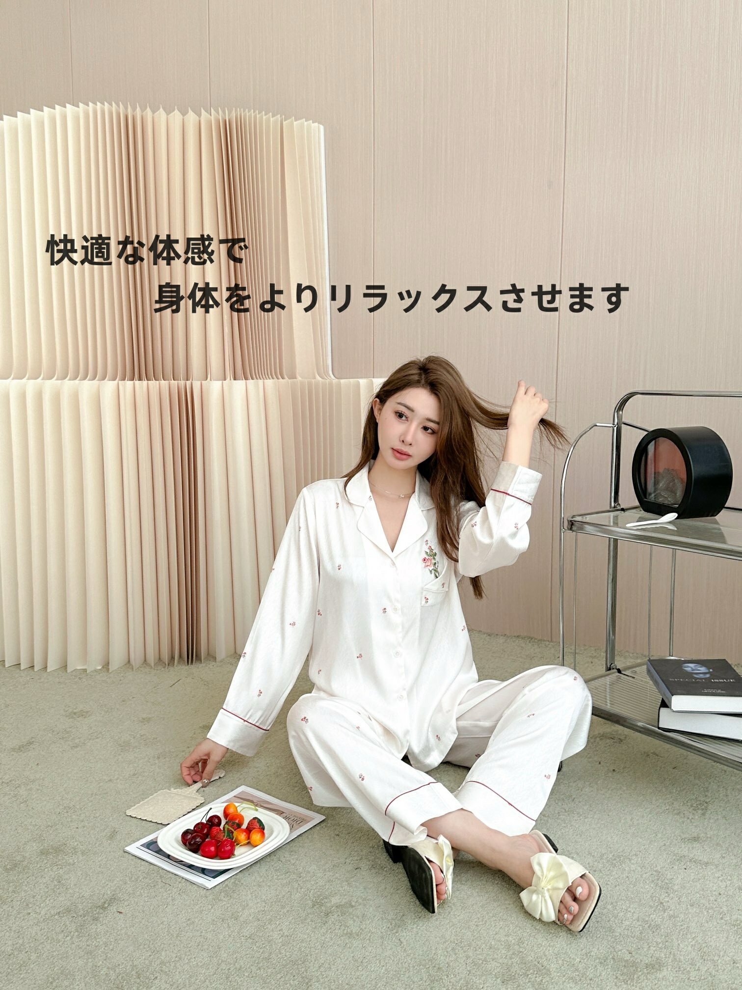 [WSJ FA ] ルームウェア 長袖 前開き 上下セット おしゃれ 部屋着 かわいい 高級な寝間着 パジャマ レディース 春 夏 柔らかく軽い薄手の快適 ゆったりしたシルエット 吸湿 通気
