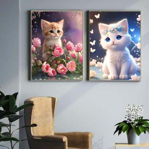 【激安挑戦/厳選品質】 ダイヤモンドアート 初心者 猫 花 刺繍キット 5Dビーズ絵画 人気名作 DIY手作り 現代 壁アート 大人 子供 部屋喫茶 送料無料