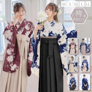 袴 4点セット 袴セット 卒業式 大学生 小学生 無地袴 花柄 牡丹 レディース SS S M L LL 着物 ネイビー 紺 黒 ブラック アイボリー グレー 送料無料