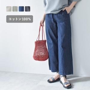 コットン100%のサラっとしたはき心地 リラックスワイドパンツ ライトデニムパンツ【送料無料】