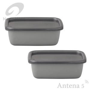 野田琺瑯 +Gray レクタングル深型(S)×2個セット シール蓋付 ホワイトシリーズ グレー ノダホーロー 保存容器 漬物 キッチン雑貨 台所 野田ホーロー