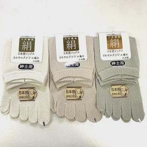 紳士シルク混五本指靴下 さわやかメッシュ日本製 シルク表糸100%で吸湿性、放湿性に優れていてメッシュ編みでサラっと快適な履き心地です。 シルク混 靴下