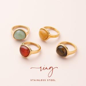リング 指輪 レディース ブランド オーバル 天然石 ステンレス 18Kコーティング 金属アレルギー 可愛い 大人 ゴールド 12号 15号 17号 サージカルステンレス