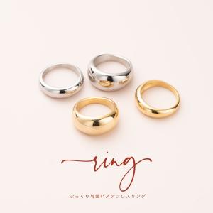 リング ステンレス 18Kコーティング 指輪 金属アレルギー 高見え レディース 可愛い 大人 ゴールド ぷっくり ワイド 9号 11号 14号 16号 18号 20号