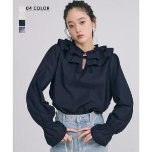 襟付き袖フレアニット |ブラウス 襟付き トップス フレア フリル フリルニット ニット ベーシック レイヤード【宅配便】