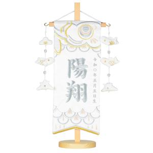 名前旗 小 旗サイズ30cm 刺繍 こいのぼり グレー 白紗綾形 白鯉兜 五月人形 鯉のぼり 男の子 刺〓