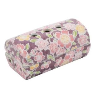 美濃焼 横置き筒型香炉 筒型香炉彩器 友禅桜 お線香 浄土真宗 真宗