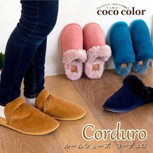 スリッパ ルームシューズ コーディロイ ファー 低反発インソール 2way 温かい