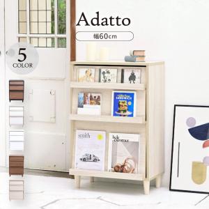 リビング収納 ディエスプレイラック スリム 3段 本棚 フラップラック 幅60×奥行35×高さ90 扉付き 絵本ラック 脚付き Adatto