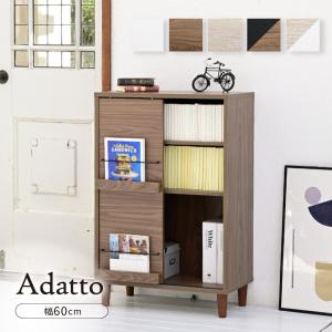 扉付きキャビネット 脚付き 引き出し付き 本棚 扉付き スリム 幅 60 リビングボード 北欧 Adatto