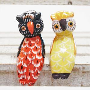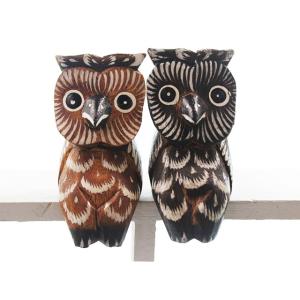 お座りペアふくろう アジアン雑貨 フクロウ雑貨 開運雑貨 風水雑貨 木彫りふくろう ※メール便非対応商品