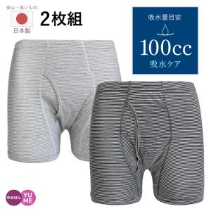 2枚組 男性用 日本製 失禁パンツ 100cc 前開き トランクス ボーダー柄 抗菌消臭 頻尿 吸水ショーツ 尿漏れ 綿混 介護 安心パンツ 紳士 旅行 屋外 M L LL