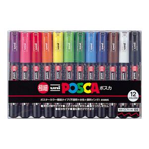 三菱鉛筆 ユニ ポスカ 12色セット 極細