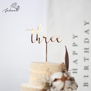 Three ケーキトッパー ゴールド アクリル製 日本製 誕生日 ケーキ バースデー 成長記録 おしゃれ 赤ちゃん お祝い 金 かわいい 三歳 飾り cake00030