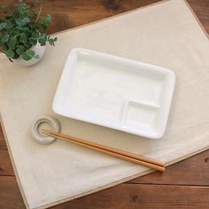 2つ仕切り玉ブチアイボリースタック スクエアーランチトレー (洋食器 白い食器 ランチプレート アウトレット 日本製)