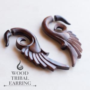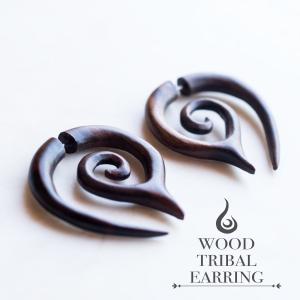 ウッドトライバルピアス 022 ウッドピアス 木製 民族模様 金属アレルギー対応 ボディピアス