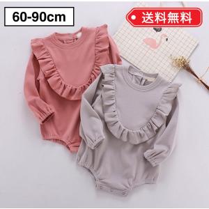 ロンパース 女の子 長袖 60 70 80 90 ベビー服 かわいい フリル くすみ ピンク グレー ギフト プレゼント