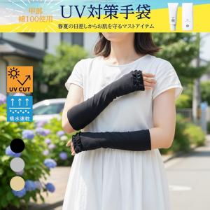 UV手袋 UVグローブ 紫外線対策 日焼け防止 UV遮蔽率92〜96% UVケア 吸水速乾 サラっとドライな着用感 接触冷感 掌メッシュ 花粉対策 24cm フリルリボン
