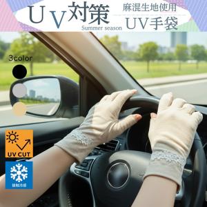 UV手袋 UVグローブ フィンガーレス 紫外線対策 UVカット率最大90% UVカット 日焼け対策 麻混生地 べたつかない 接触冷感 掌のうっかり日焼け防止 花柄 母の日
