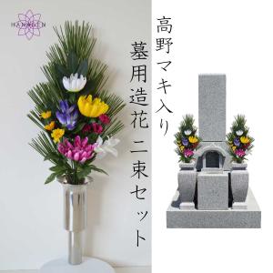 墓用造花 お墓用 造花 高野マキ 仏花 造花 墓用 リンドウ 2本 高野槇 墓花 お墓用造花 槇 槙 まき 2束 高級 仏壇用 寺用 造花 御供 シルクフラワー 彼岸 お盆