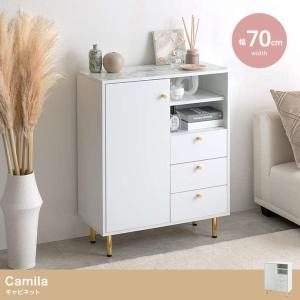 キャビネット チェスト 白 おしゃれ 北欧 棚 ディスプレイ タンス ラック 大理石柄 脚付き 引き出し 収納 幅70