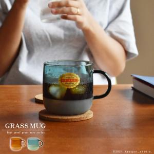 ガラスマグ 耐熱ガラス レトロ ツートンガラスマグ グリーン アンバー 350cc 11cm×8cm×8cm 電子レンジ 食洗器使用可 熱湯可 食器 コップ おしゃれ