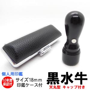 印鑑 実印 黒水牛 印鑑 18mm ケース付 印鑑セット かっこいい 印鑑 作成 銀行印 男性 はんこ フタ キャップ付 天丸 爆買