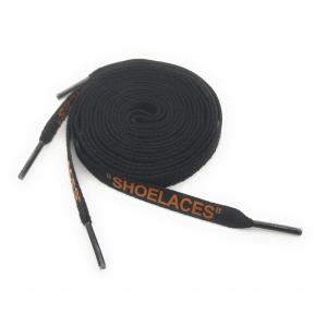 0229 靴紐 平紐ブラック橙字 120cm 2本セット