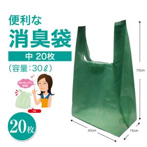 便利な消臭袋中サイズ20枚組 消臭袋 ゴミ袋 柿渋由来 天然消臭 介護 おむつ ペット 生ごみ 抗菌 消臭 フック付き ポイント利用