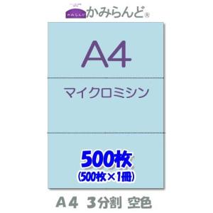 プリンター帳票用紙 空色(青)【A4】3分割マイクロミシン目入り用紙 3面 500枚 納品書 領収書 請求書 各種伝票 カラー用紙