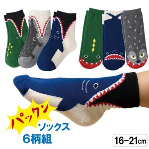 ぱっくんソックス 6足セット 靴下 キッズ 男の子 セット 女の子 男児 女児 子供 こども ジュニア 幼稚園 小学生 怪獣 ワニ 狼 サメ 動物 保育所 人気 のびのび