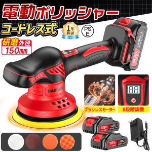 ポリッシャー 車 150mmバフ 電動 充電式ポリッシャー 8段階変速 車磨き サンドペーパー 大容量バッテリ一 残量表示 研磨機 洗車 車磨き 鏡面磨き 傷消し 家庭用