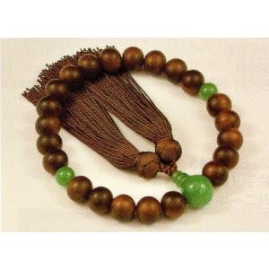 お念珠 男性用 栴檀(せんだん) 22玉 ヒスイ仕立 古都房(こげ茶)