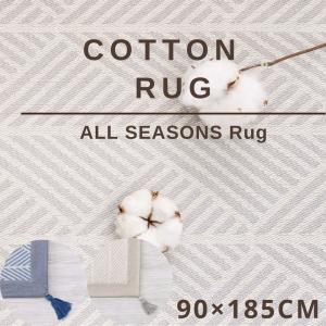 オールシーズン対応 コットンラグ 90×185cm 洗える インド綿ラグ クラック カーペット ラグマット 夏 夏用 ウォッシャブル 洗えるラグ