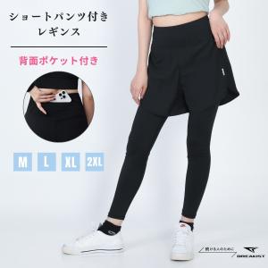 ショートパンツ付きレギンス 一体型 レギンス レディース スマホポケット付き ランニングウェア ランニングパンツ 冬 秋 フィットネス タイツ レギパン