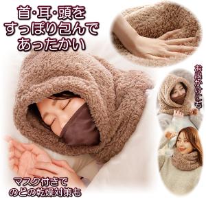 寝る時 暖かい グッズ 首 耳 頭 顔 あったか 防寒 冷え 乾燥 対策ネックウォーマー スヌード マスク 就寝 極暖 頭すっぽり フード シルクマスク付き