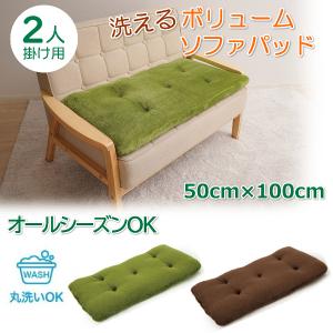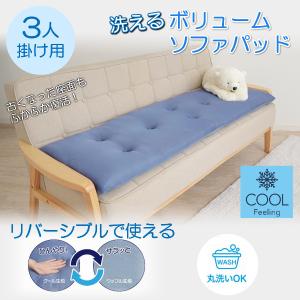 ソファ パッド 3人掛け 座面 カバー 洗える リバーシブル ボリューム ソファー ロング クッション 春 夏 冷感 ひんやり ふかふか ごろ寝 座布団 厚め 長座布団