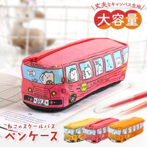 ネコ バス ペンケース 筆箱 ポーチ 小学生 車 男 女 猫 にゃんこ 可愛い 乗り物 子供 プレゼント おしゃれ 化粧 爆買