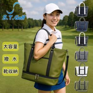 ゴルフ トートバッグ S.T.Golf メンズ 高級PUレザー 大容量 シューズ収納可 3WAY 型押しロゴ ショルダーストラップ付属 防水 50cm×40cm×20cm プレゼント 景品