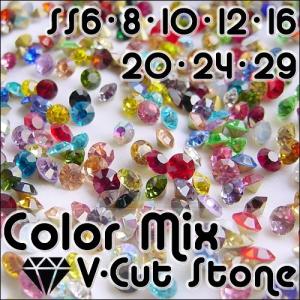 【グロス売り】チャトン カラーミックス ss4,ss6,ss8,ss10,ss12,ss16(1440粒)ss20(720粒)ss24(432粒)ss29(288粒) 高級ガラス Vカットストーン【メール便OK】